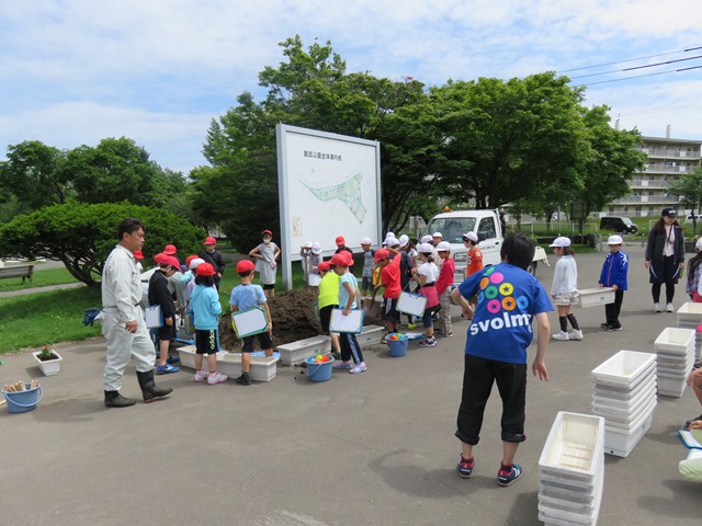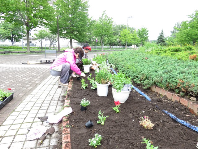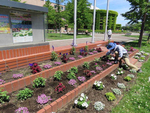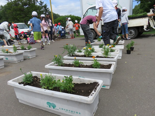マリーゴールドをプランターに植えました。 天気にも恵まれ、みなさん一株一株、丁寧に植えてくれました。 公園沿いの農試1号線歩道に設置しましたので、ぜひご覧ください♪![]()