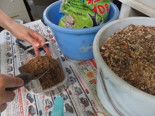 土を入れて、お家を作ります。