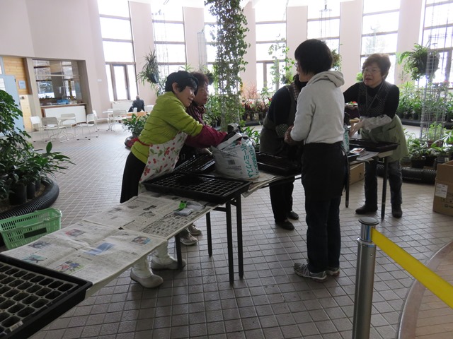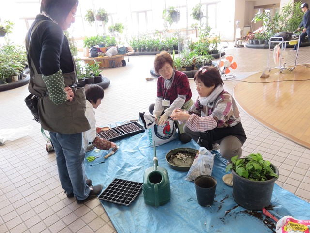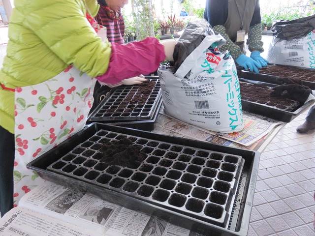 ボランティア「カポック」の皆さんと、コリウスの種蒔きと