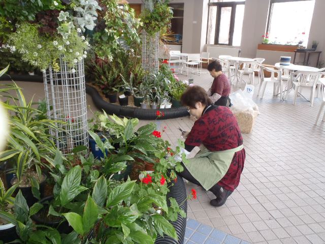 サンルーム植物の手入れをカポックの皆さんとしました。