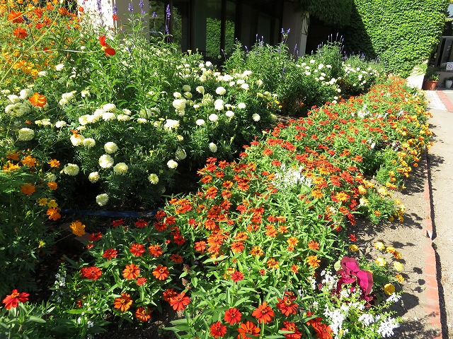 そのキバナコスモスのそばには、カラフルなお花が咲きそろっているので、コチラもオススメですよ♪