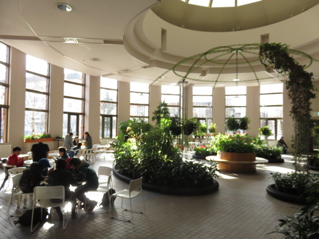 ツインキャップの中にあるこの施設は、その名の通り、大きな窓から自然光が降り注ぎ、