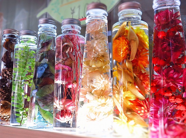 農試公園のハーバリウムのビンの中に入っているドライフラワーは、