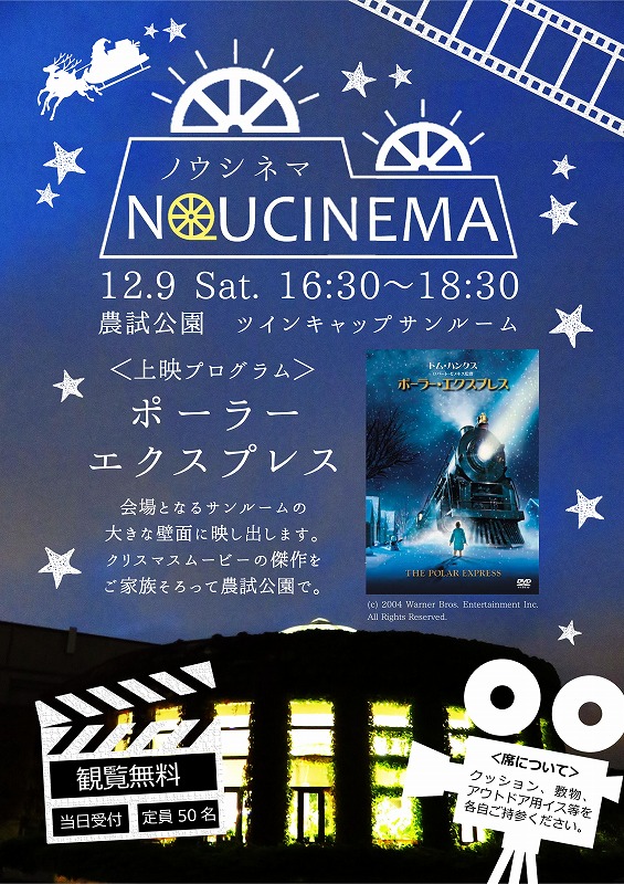 ★クリスマス映画上映会「ノウシネマ」 16:30~18:30、観覧無料 ※定員50名、当日受付