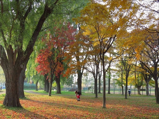 そのおかげで、足元にはカラフルな落ち葉のカーペットが広がっています。