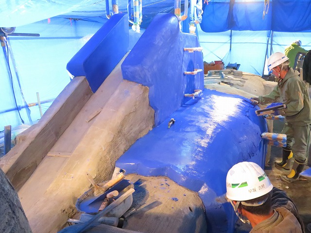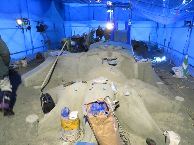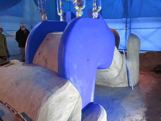 またまた遊戯広場内の大きな仮設テントに公園スタッフが許可を得てお邪魔し、工事風景を見てきました。