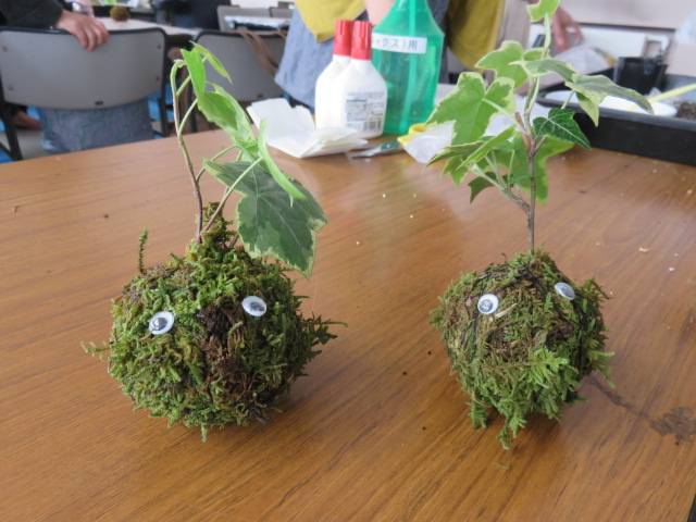 やはり、制作された方の個性が出るようで、様々なお顔の苔玉が完成しました。