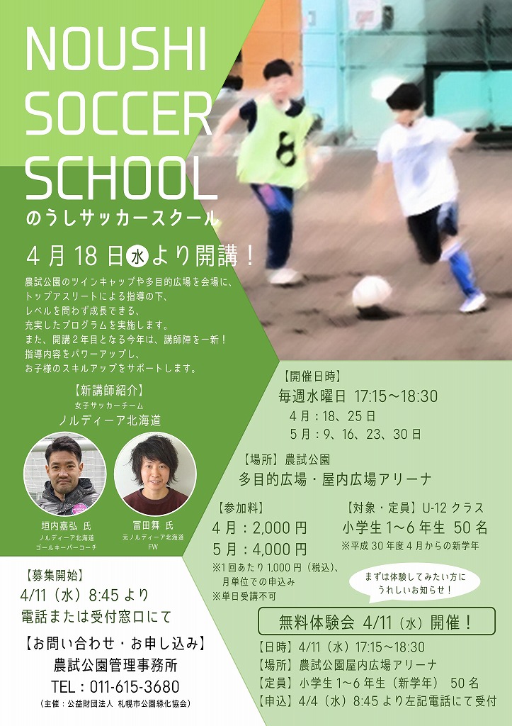 「のうしサッカースクール」4/18(水)より新規開講!参加者大募集♪