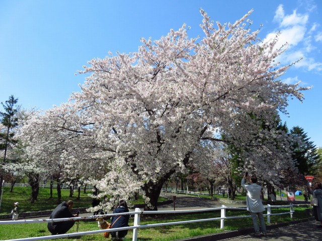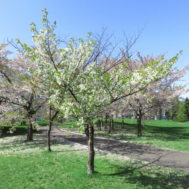 農試公園では見頃が終了したエゾヤマザクラやソメイヨシノに代わり、