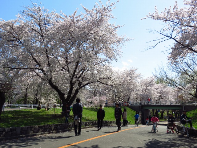 農試公園に程近い、琴似発寒川の川沿いにある「発寒西陵公園」では、昭和60年に発寒地域の方々によって植樹された「西陵の桜」があり、約50本のサクラが5月の開花期にお楽しみいただけます。