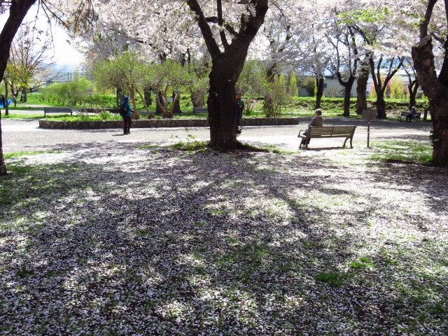 下を見れば、桜色のじゅうたん!この時期だけ見ることが出来る、春ならではの風景です。