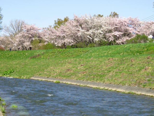 琴似発寒川の対岸から見られるソメイヨシノもおすすめポイントです。