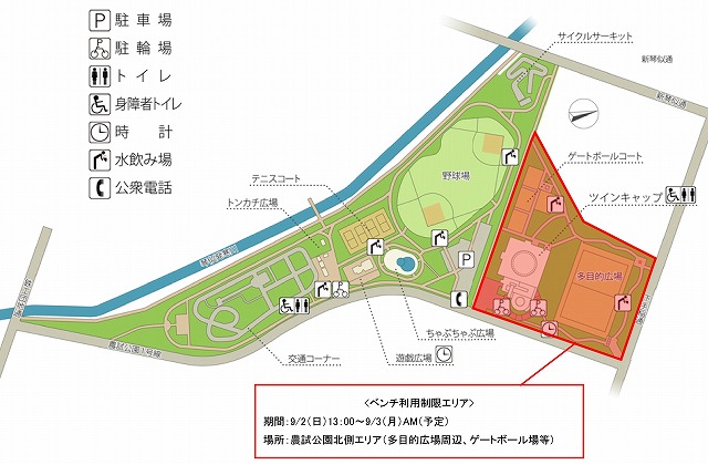 (多目的広場一帯、ツインキャップ前、ゲートボール場等)