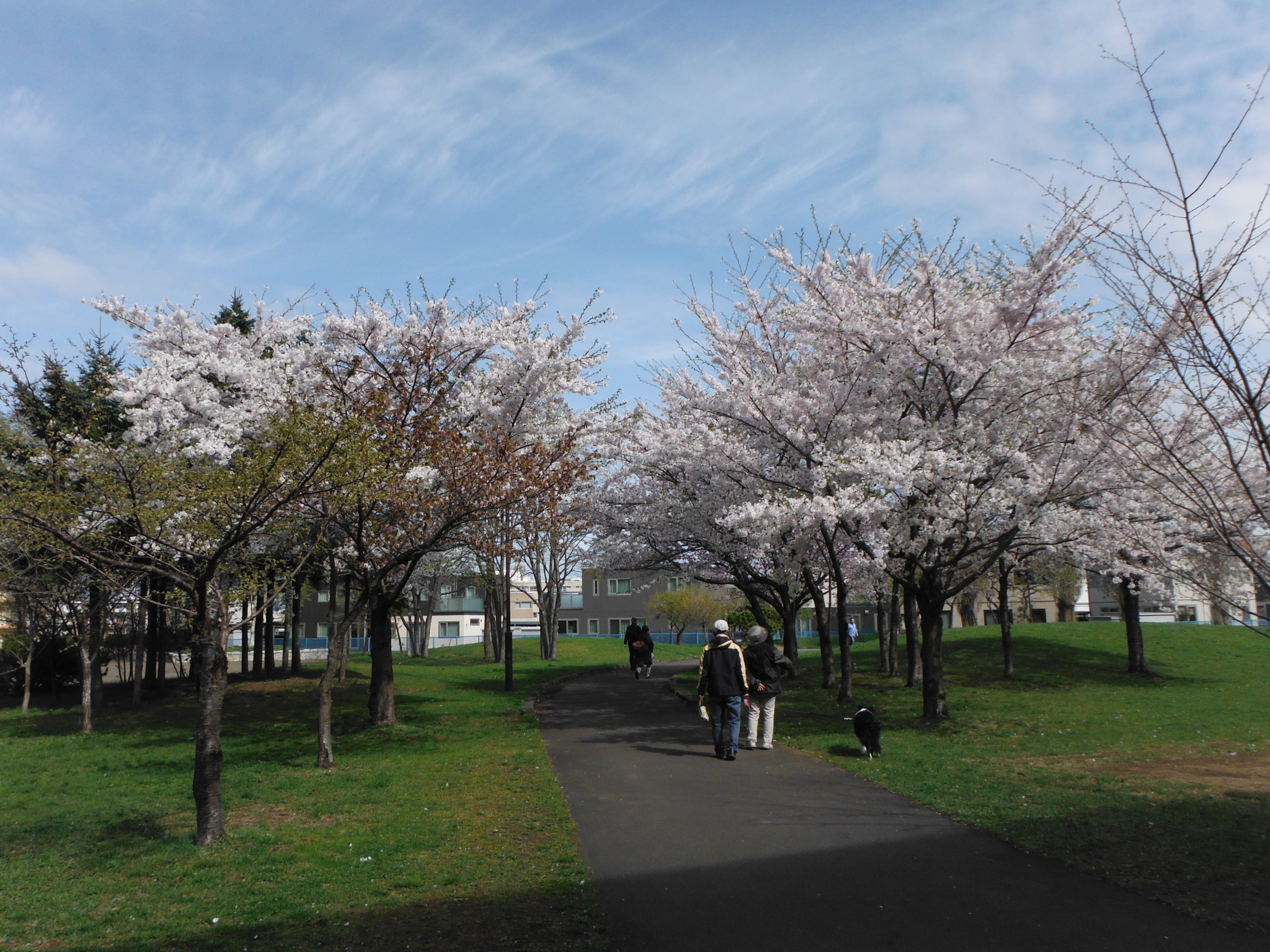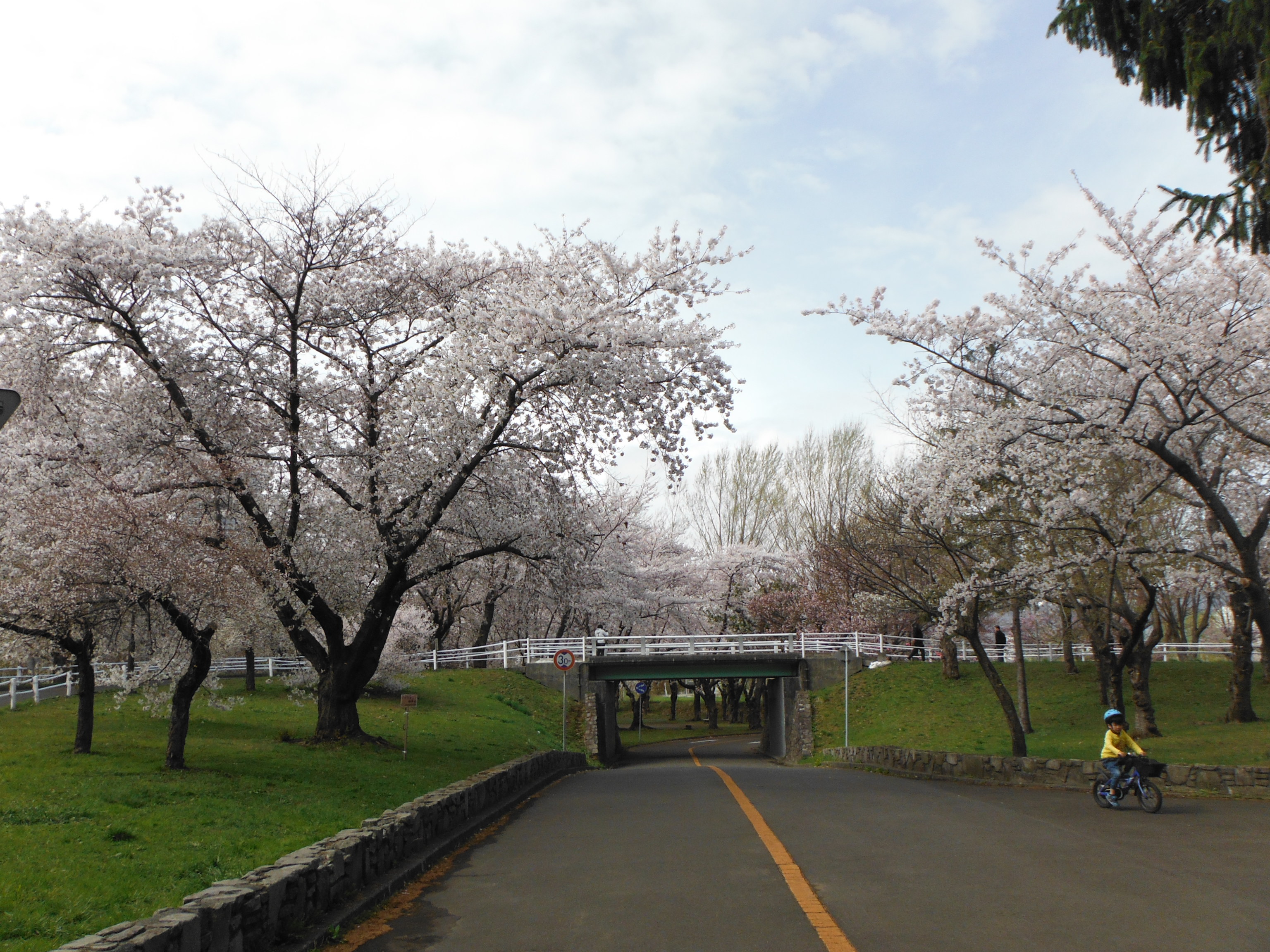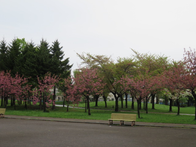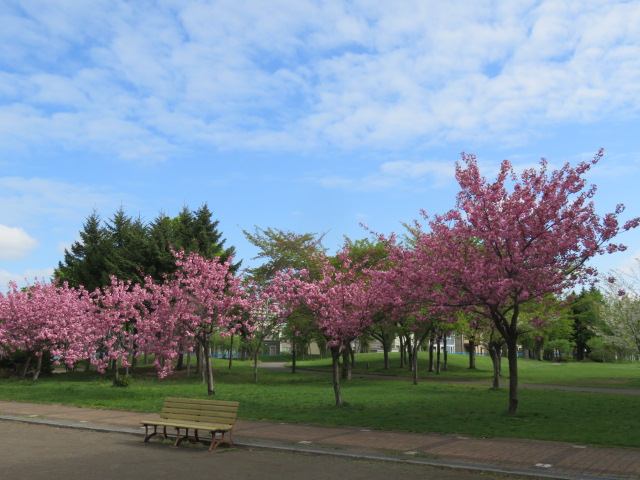 農試公園のエゾヤマザクラやソメイヨシノは散ってしまいましたが、代わりにヤエザクラが見頃をむかえています。