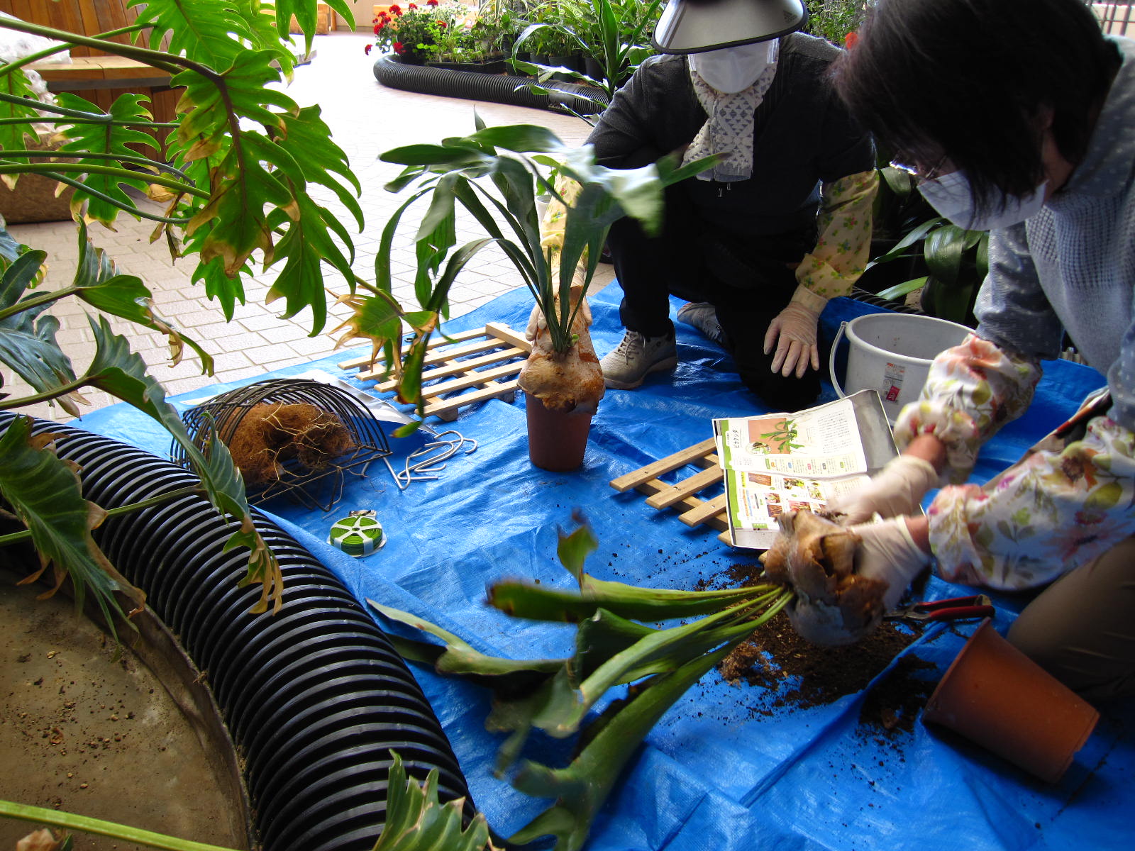 農試公園緑化ボランティア「カポック」さんのご協力で、屋内広場サンルームは、丁寧にお世話されています。