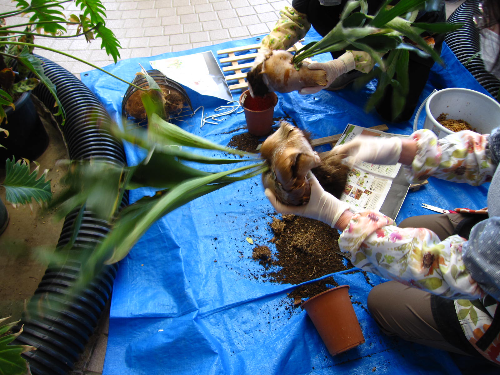 そして、もうひとつの班は、寄せ植えをつくりました。