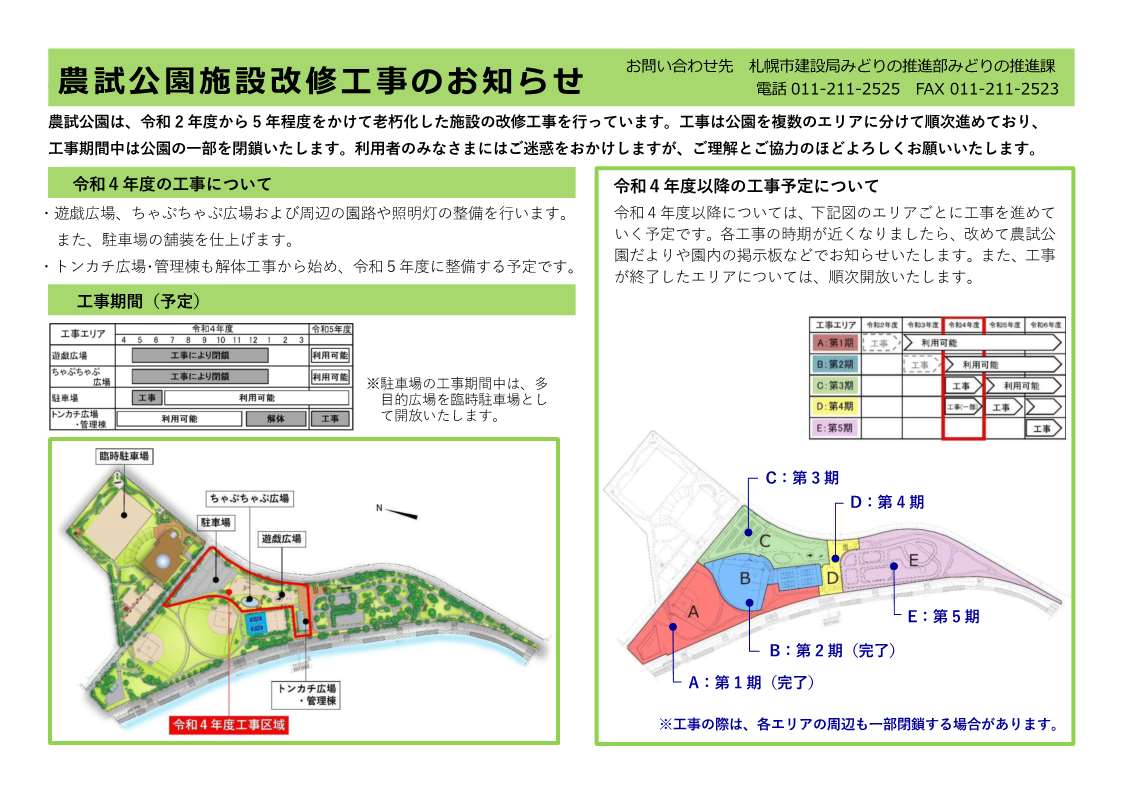 令和4年度 農試公園改修工事のお知らせ