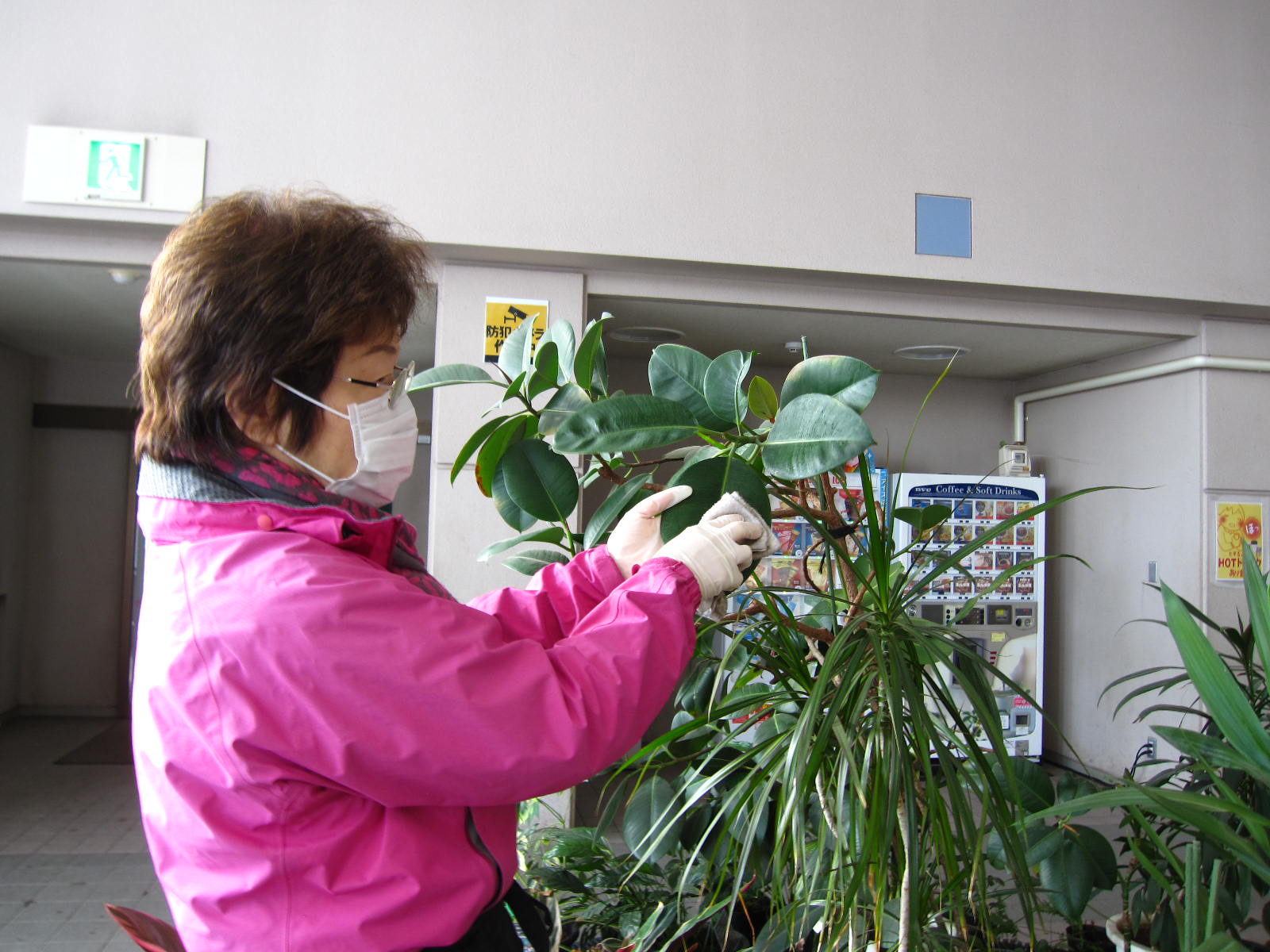 そして、今日は、観葉植物の葉を拭く作業を中心に活動しました。