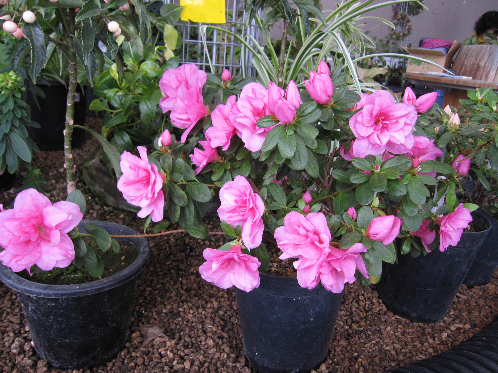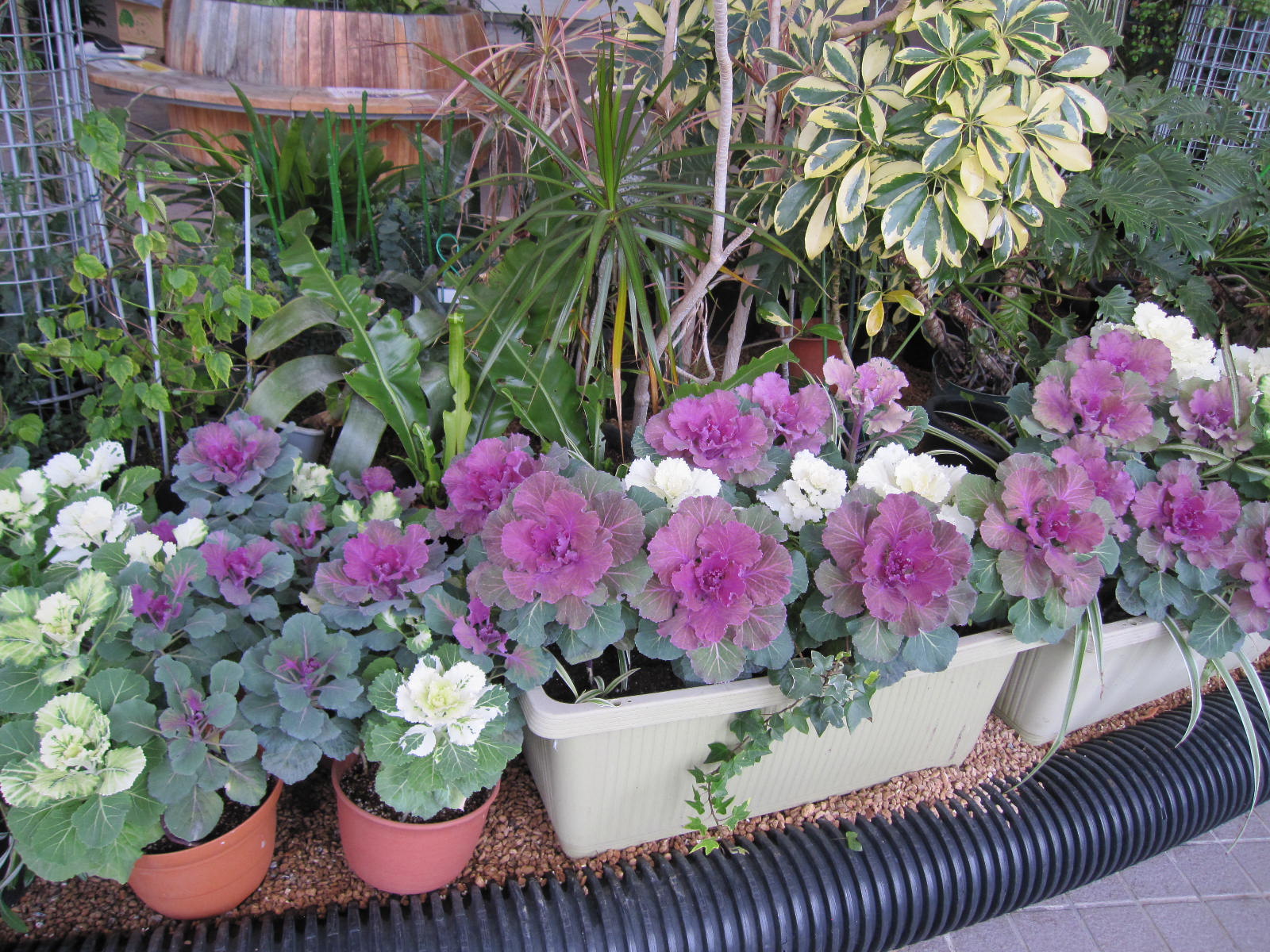 アザレア、ハボタンと農試公園のサンルームは花盛りです。