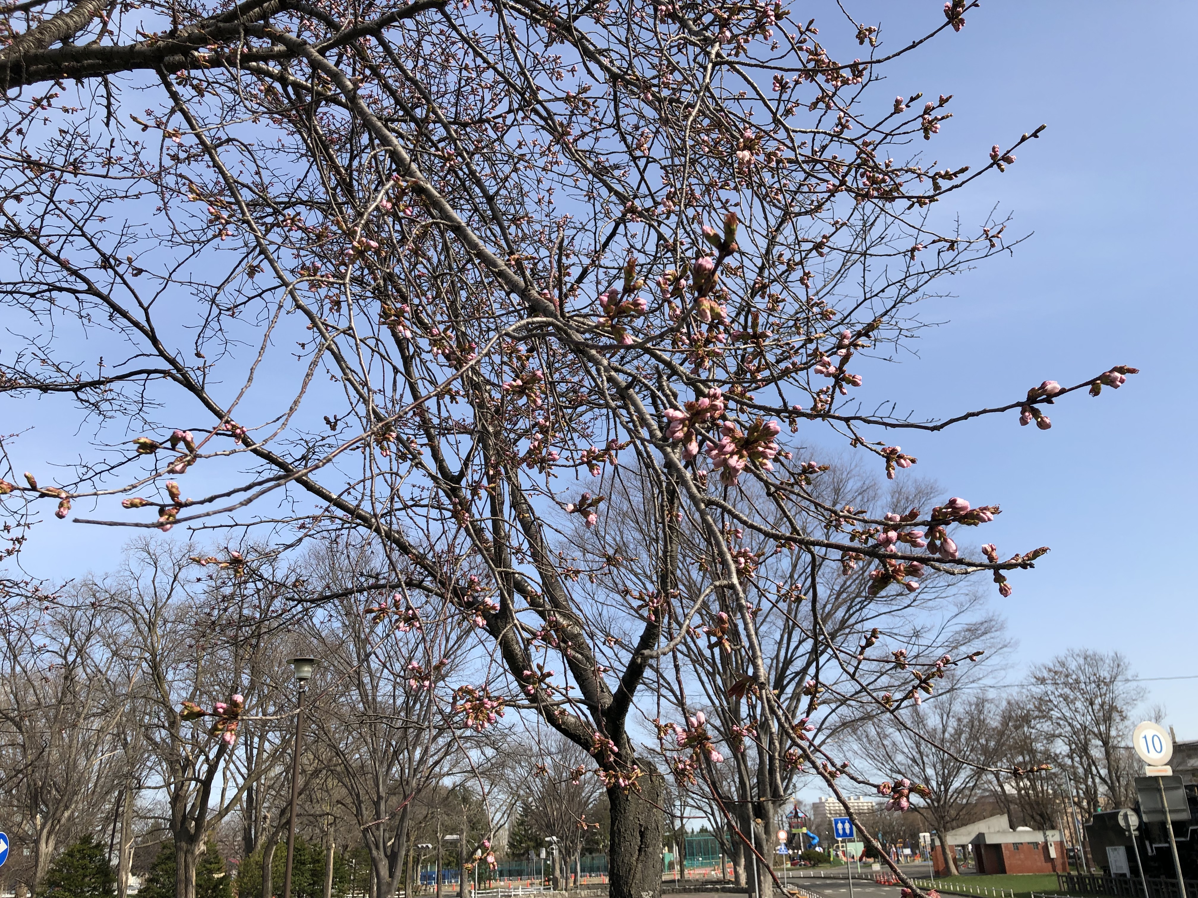農試公園の桜の開花が始まりました。来週には見ごろを迎えそうです。