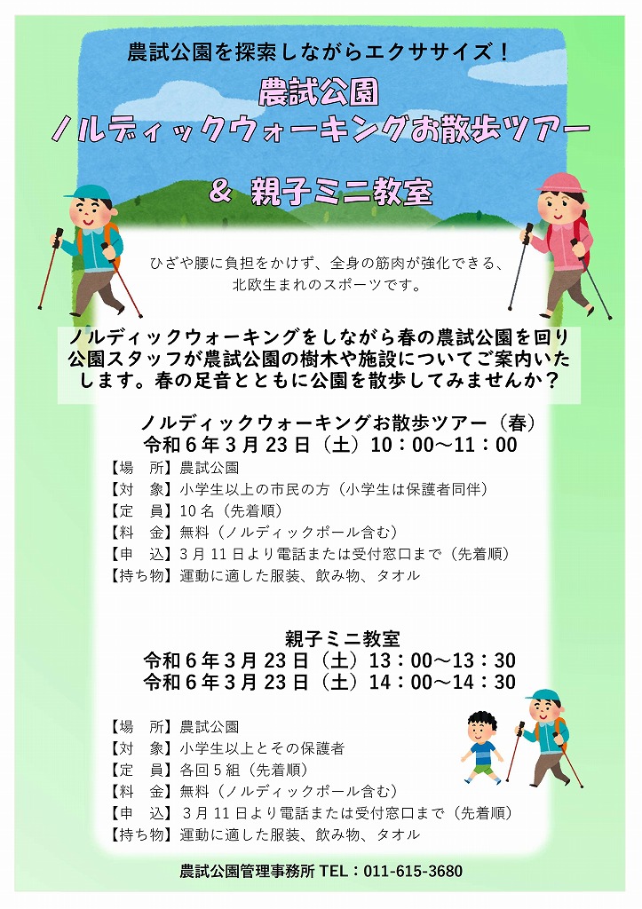 【イベント情報】ノルディックウォーキングお散歩ツアー&親子ミニ教室開催のお知らせ