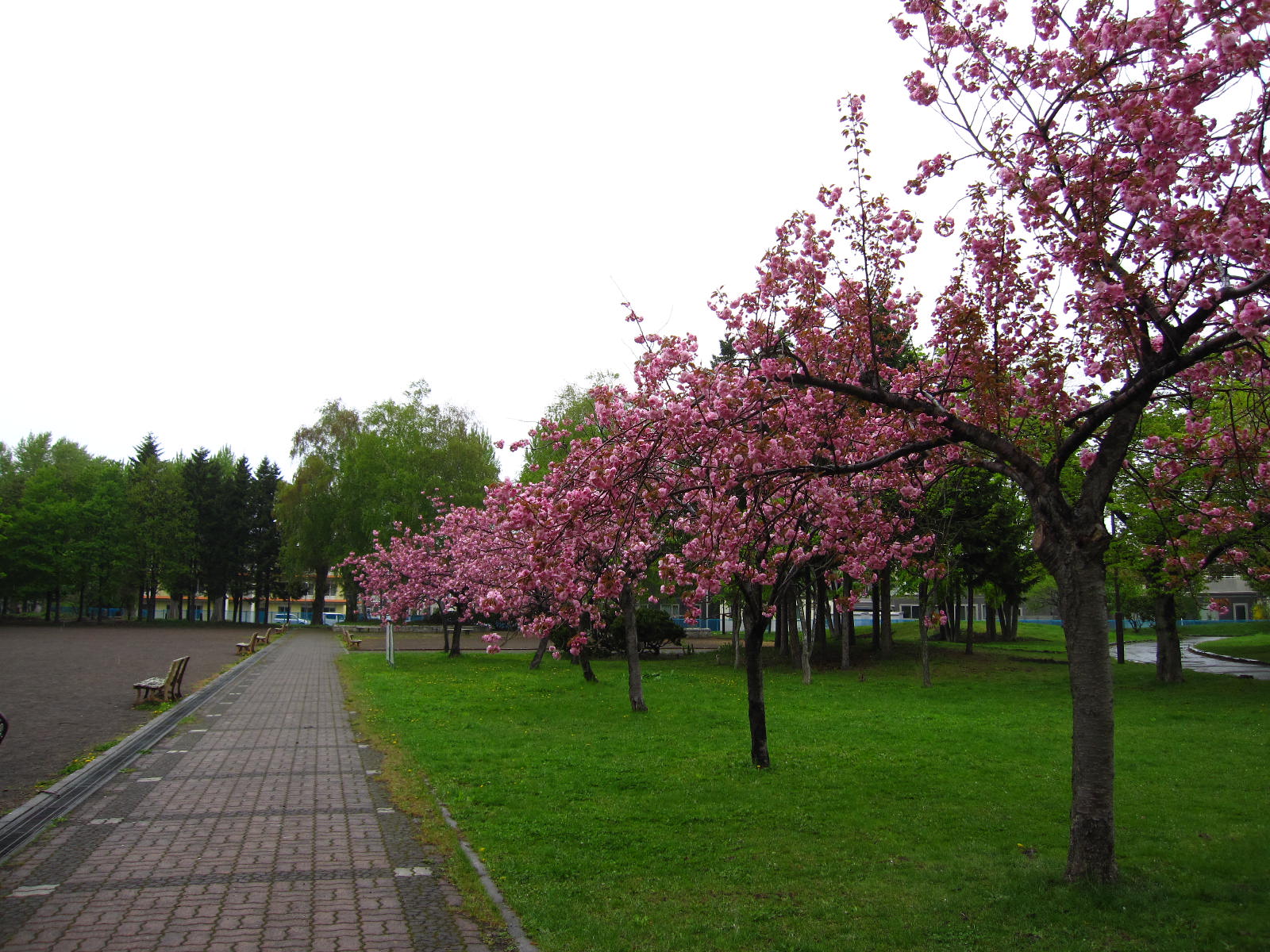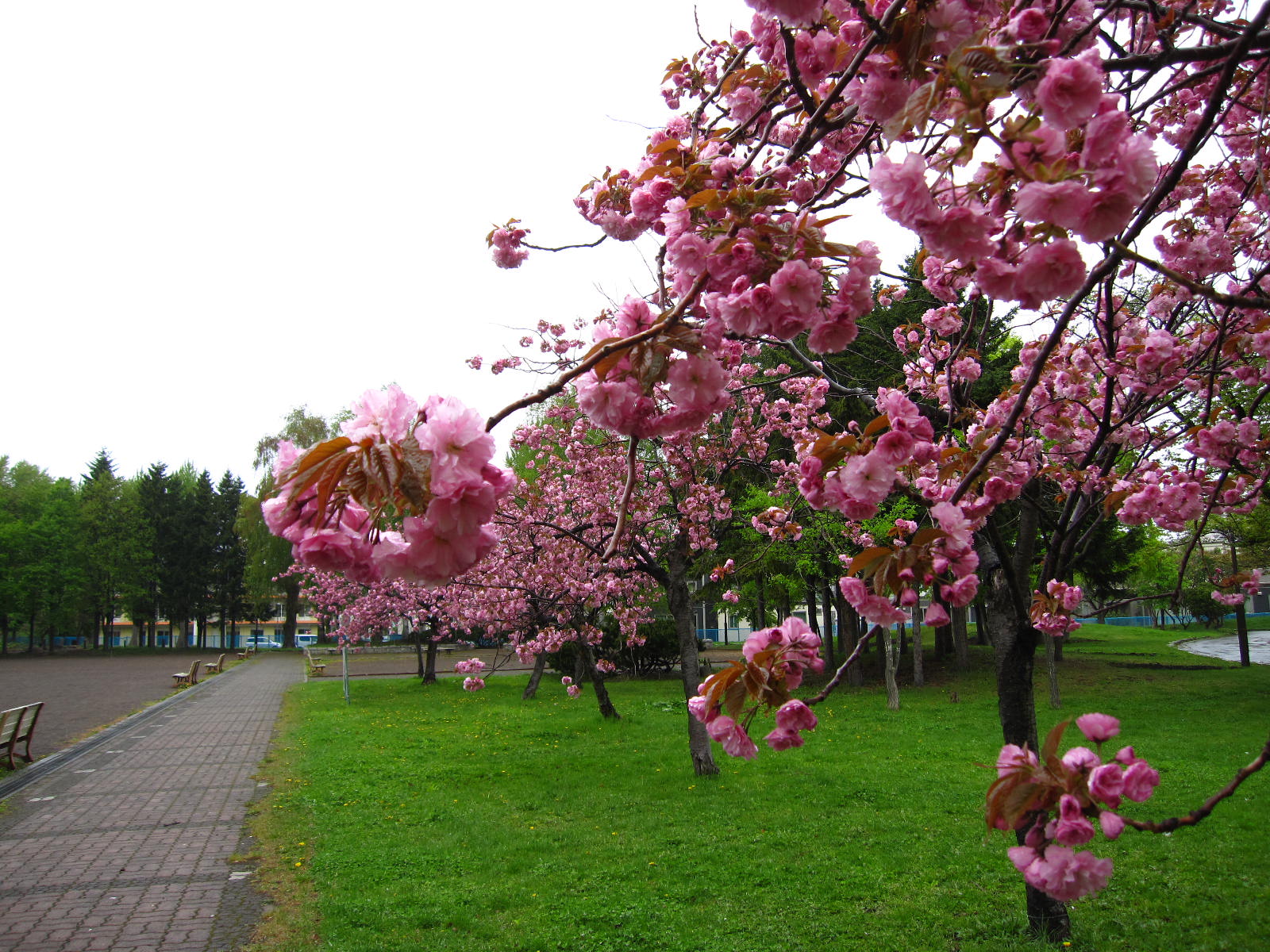 あいにくのお天気ですが、ヤエザクラが満開でとてもきれいです。