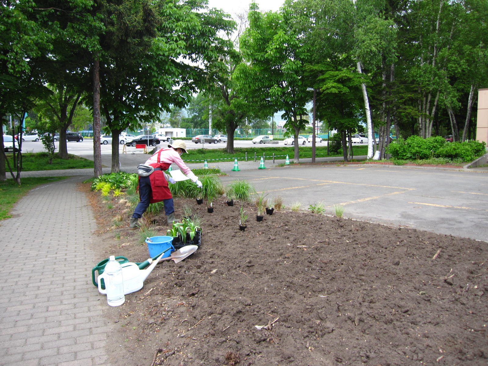 20日(月曜日)の活動は、2カ所の花壇の植え込みをしました。