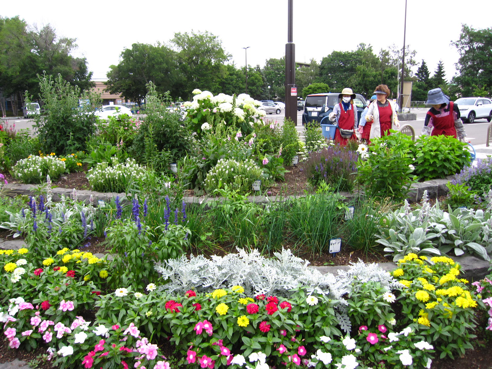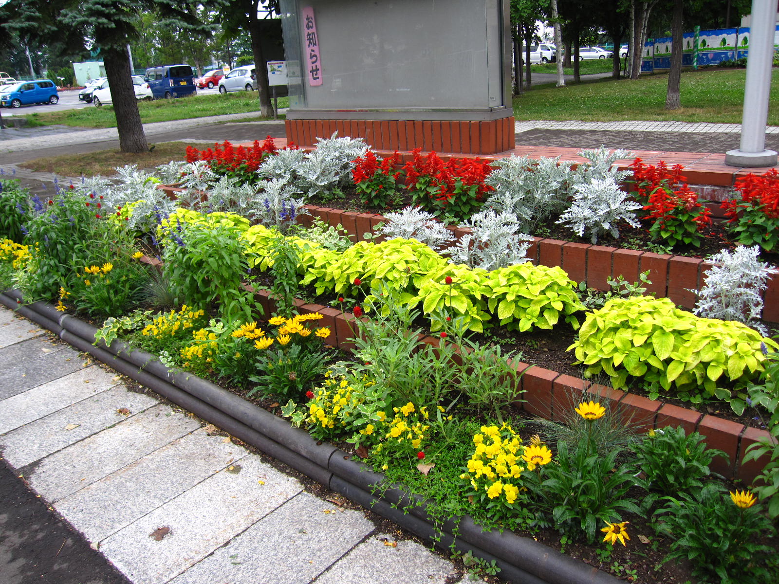 お花がどんどん育って、花壇がとてもきれいです。