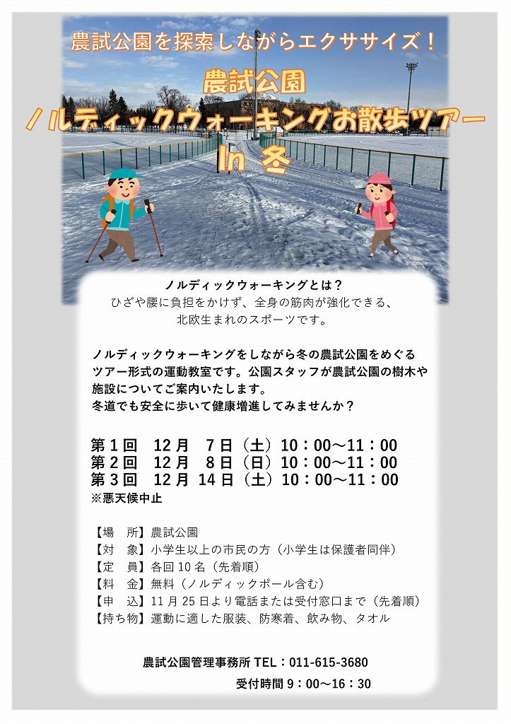 【イベント情報】農試公園ノルディックウォーキングお散歩ツアー in 冬 開催のお知らせ