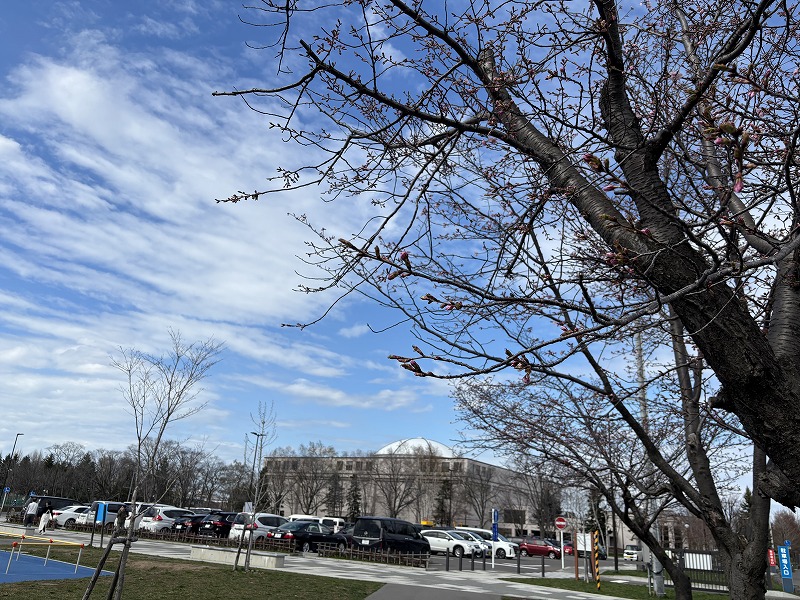 開花状況は咲き始めで、今週末は気温も低いので見頃は来週となる見込みです。