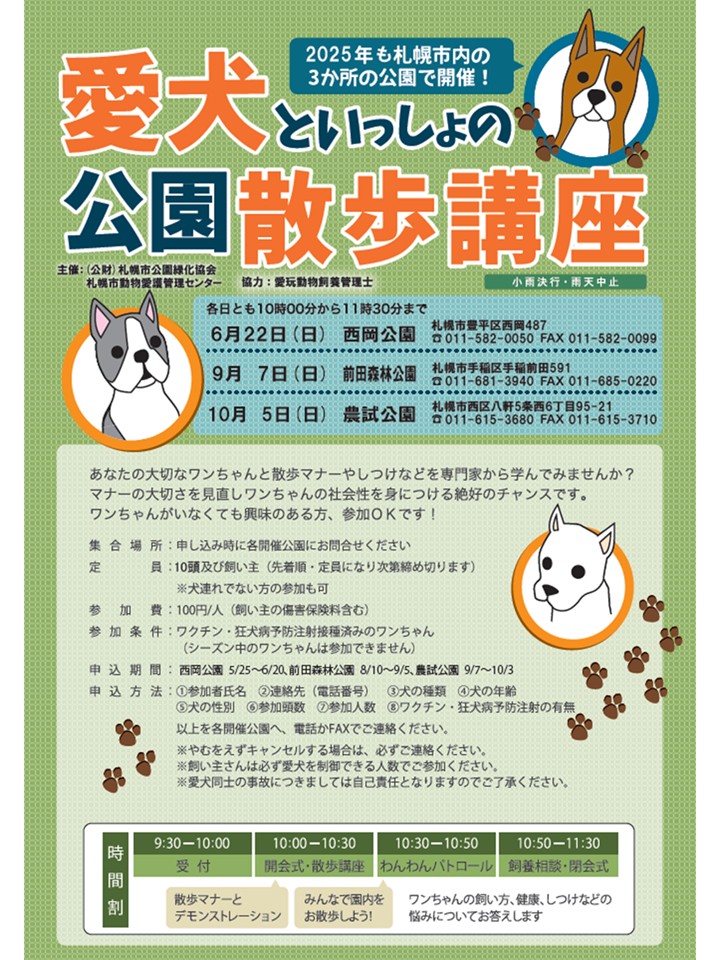 農試公園で「愛犬といっしょも公園散歩講座 in 農試公園」を開催します。