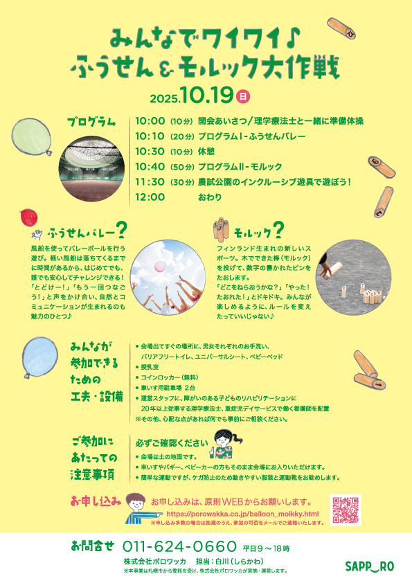 申し込みフォームhttps://porowakka.co.jp/balloon_molkky.html(外部サイト)
