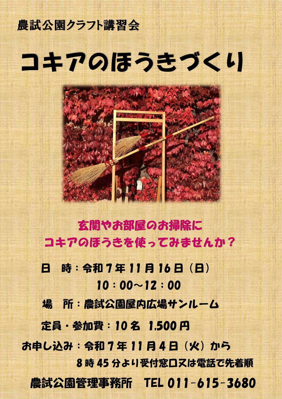 そんななかですが「コキアのホウキづくり」を二年ぶりに開催いたします。