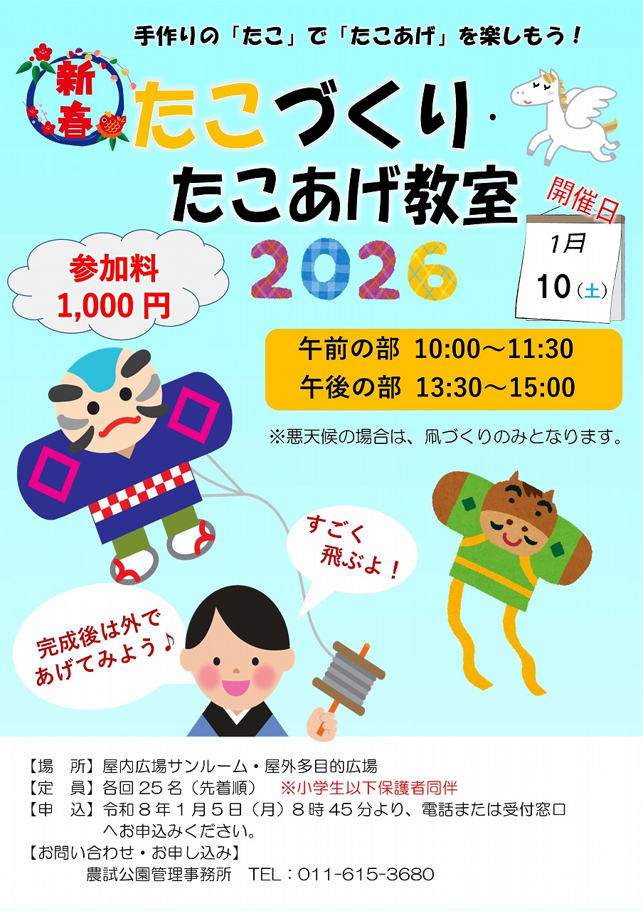 「新春たこづくり・たこあげ教室2026」を開催いたします!