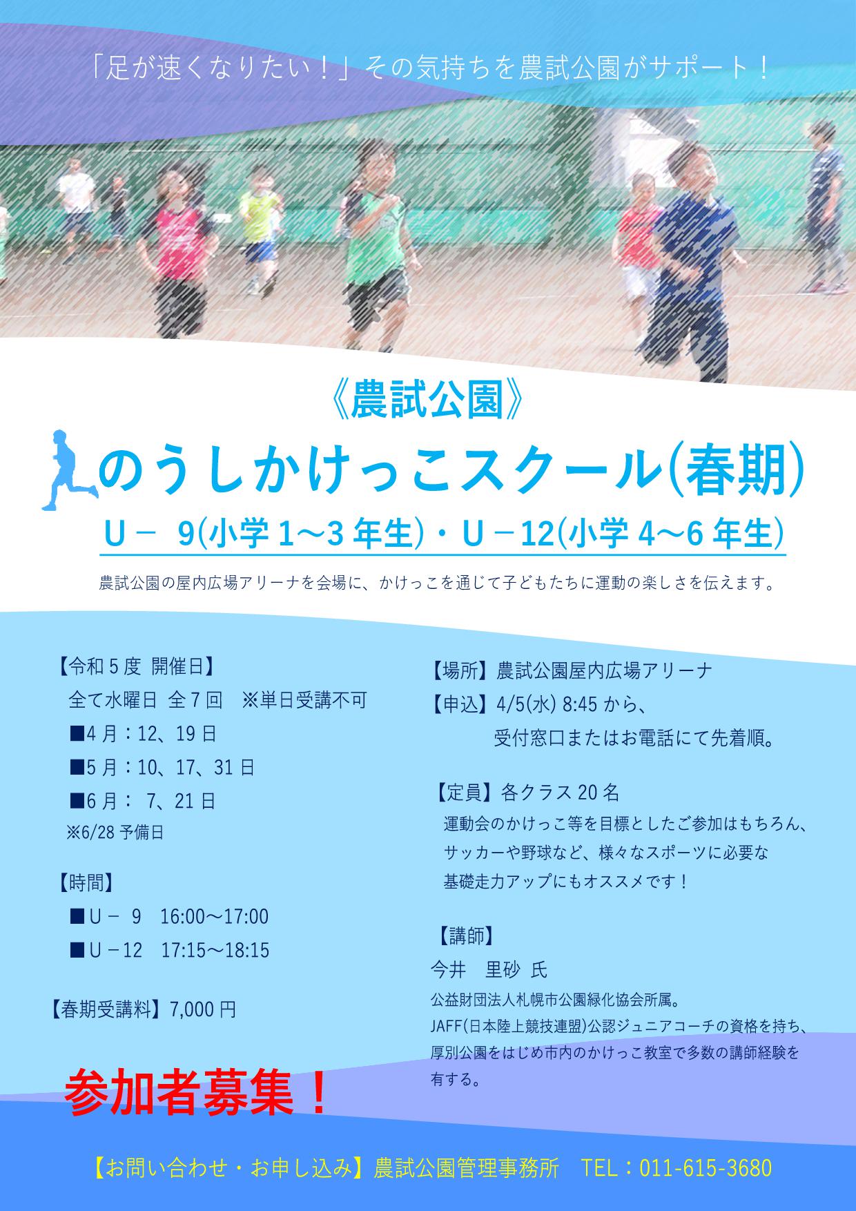 農試公園ツインキャップアリーナでは、この春も「のうしかけっこスクール」を開催します。