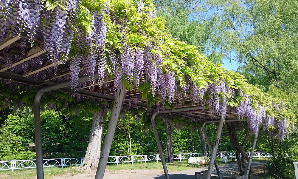 今、フジの花が綺麗に咲き始めています。五分咲きくらいでしょうか?