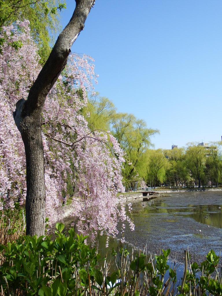 ボート池まわりのシダレザクラはまだ見頃が続いています。