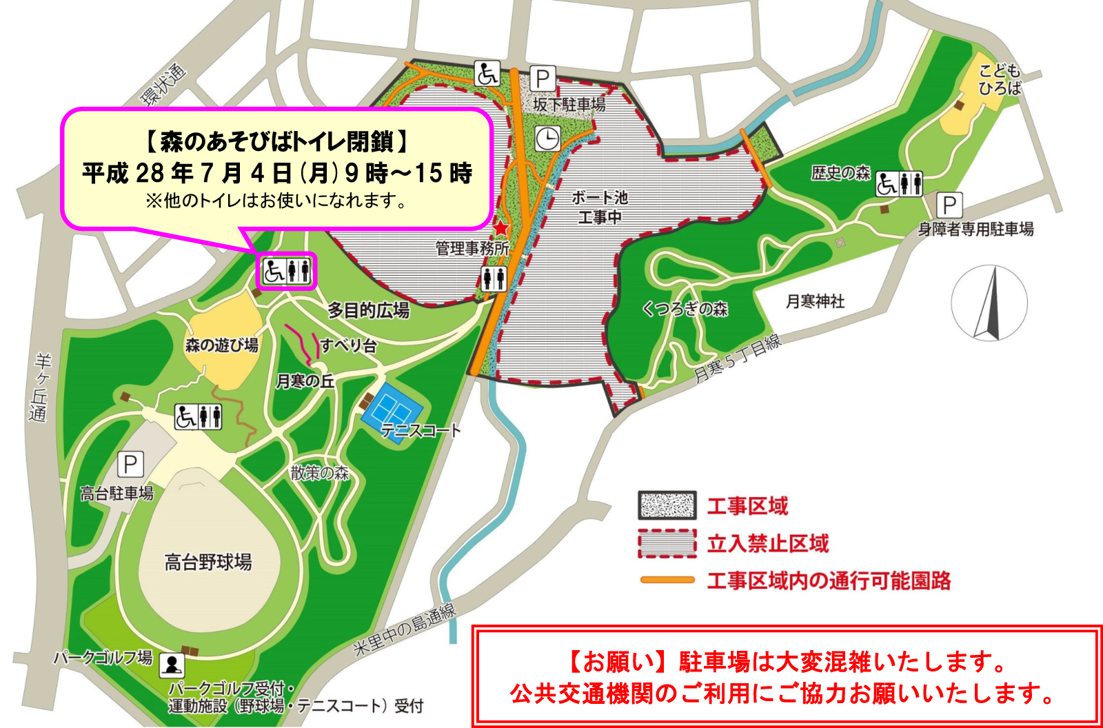 7/4(月)トイレ(森のあそびば)を閉鎖いたします。