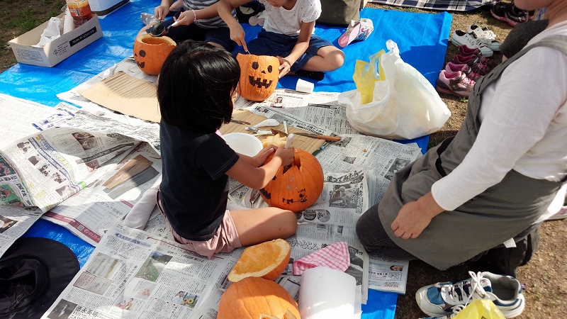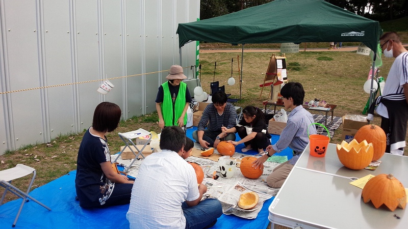 今日の「つきさむパークライフワゴン」のテーマは「たべもの」です。 会場には大きなかぼちゃが登場! …と言っても、食べたりしません。 ハロウィンの季節なので「ジャック・オー・ランタン(ジャコランタン)」づくりにチャレンジします。 一緒にいた大人も、ついついカボチャの中身を取り出す作業に夢中です。 仮装して写真が撮れるコーナーも作りました。 ↑強そう! 今日もたくさんのお友達に遊びに来ていただきました。ありがとうございます! 来月のテーマは、決まり次第ホームページ上で案内します。お楽しみに! つきさむパークライフワゴンについてはこちら 先月の様子はこちら