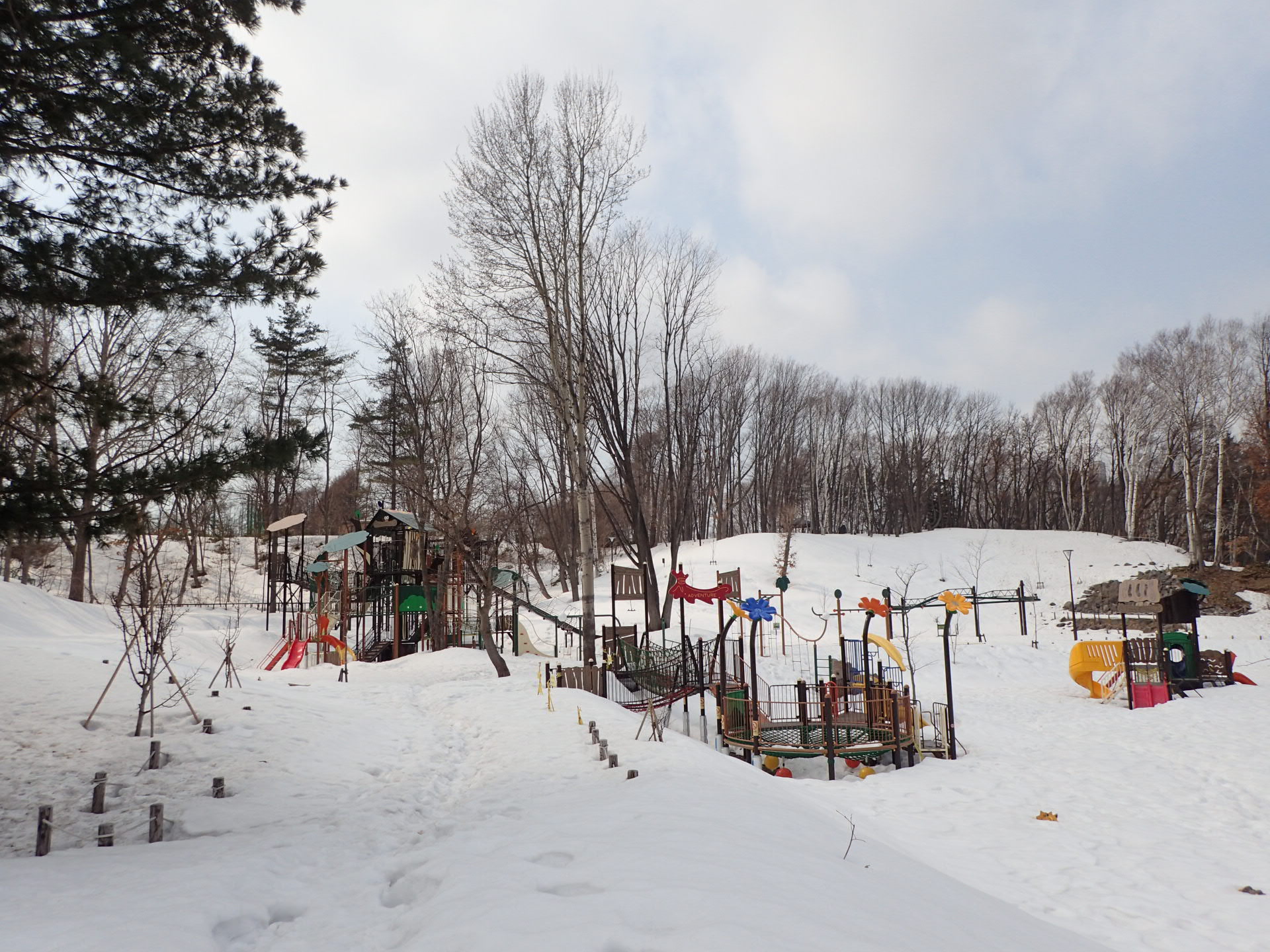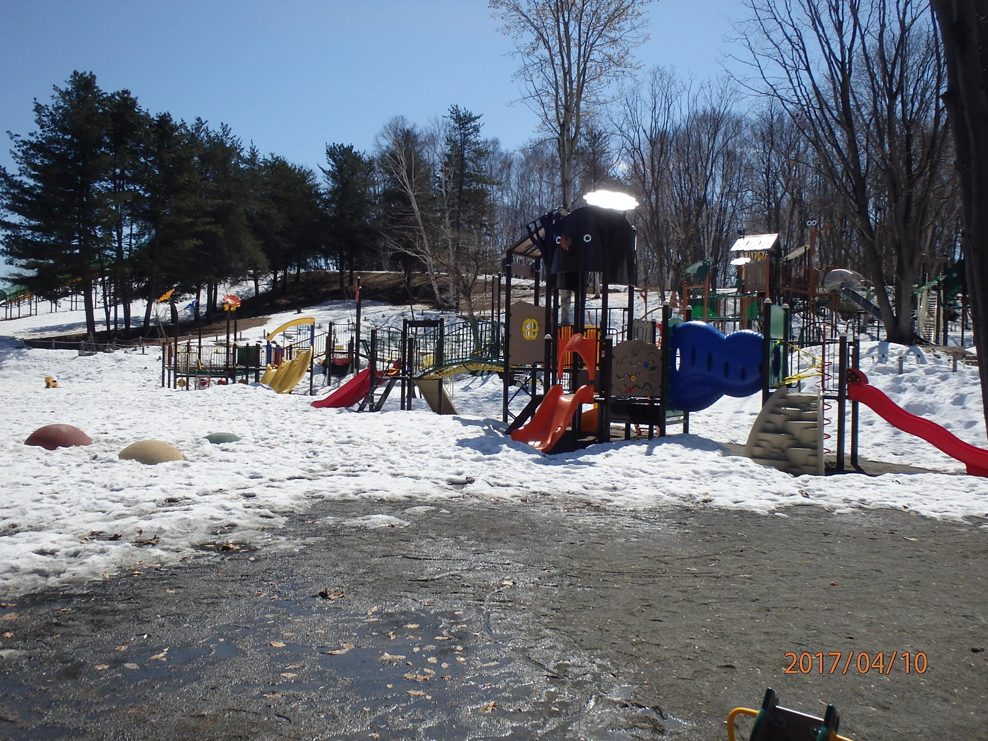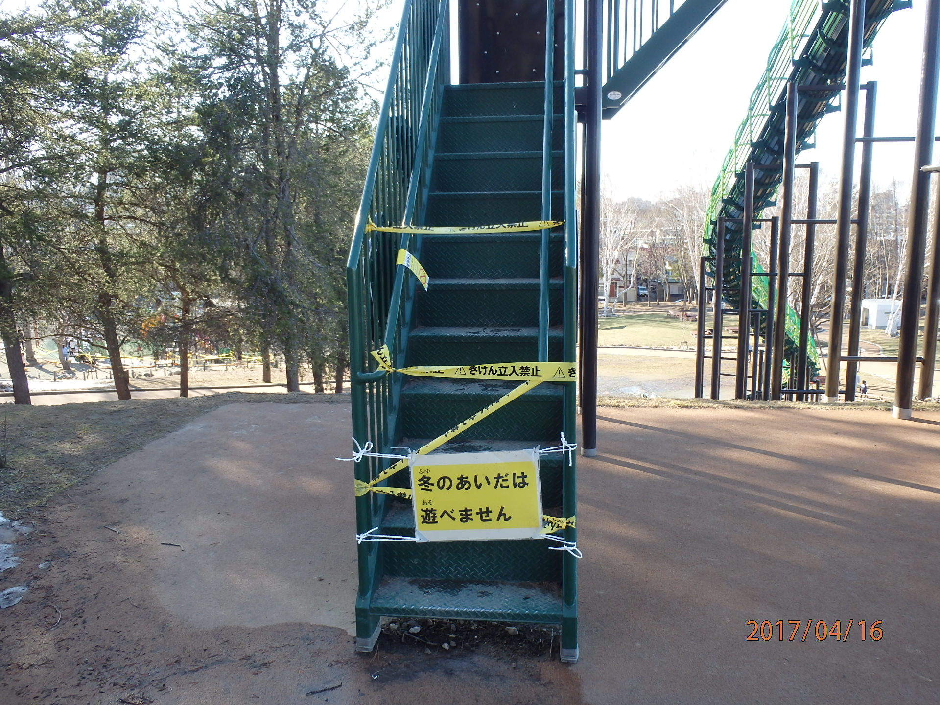 雪が解けて、遊具の点検が終わってからの開放になりますので、遊具で遊べるのは4月中旬以降になるかと思います。