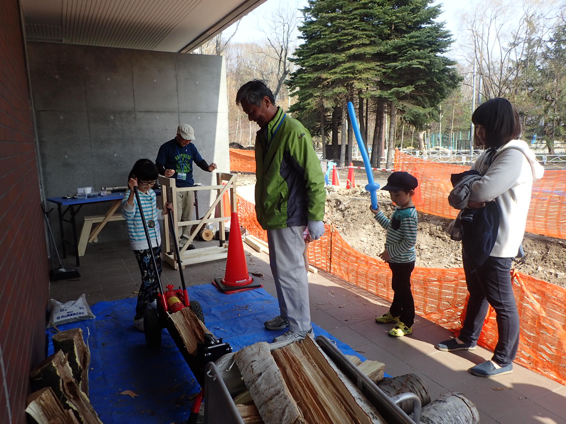パークライフセンターには薪ストーブがあるので、薪割り体験も行いました。
