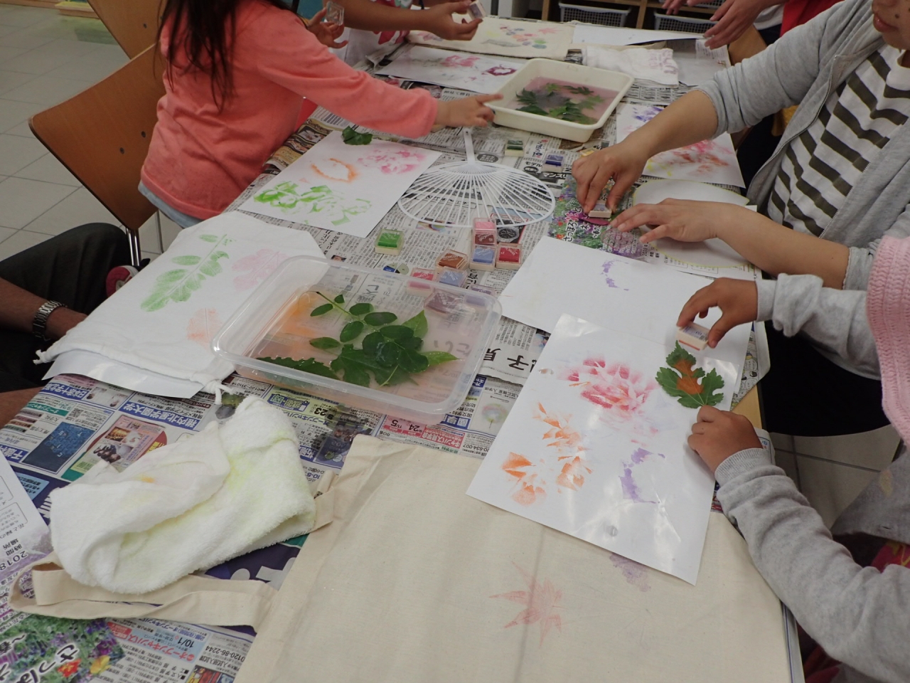葉っぱのスタンプでうちわ作りをしませんか?