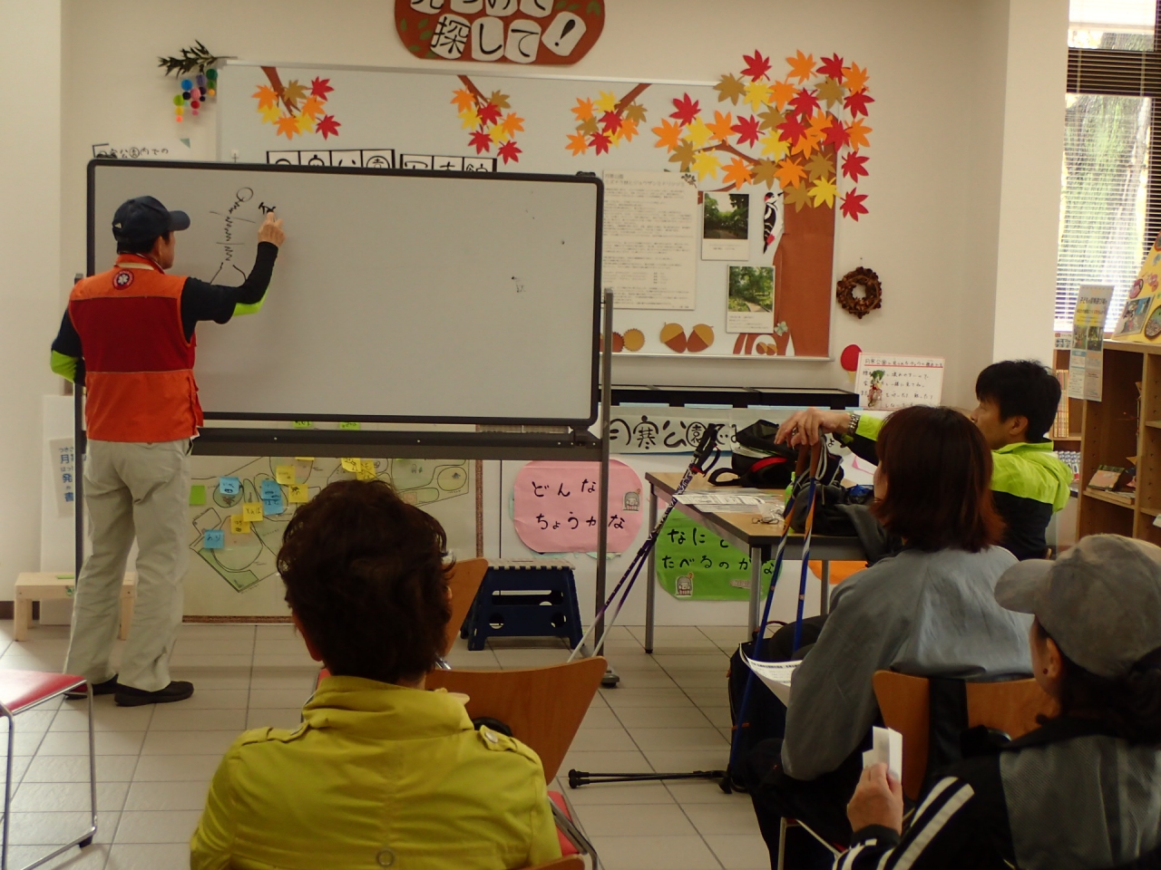 はじめに、パークライフセンター内でノルディックウォークについてや運動の大切さ