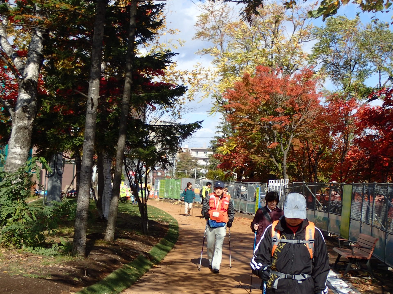 最後は、月寒公園内を1時間かけてノルディックウォーキング、公園内は紅葉もきれいで