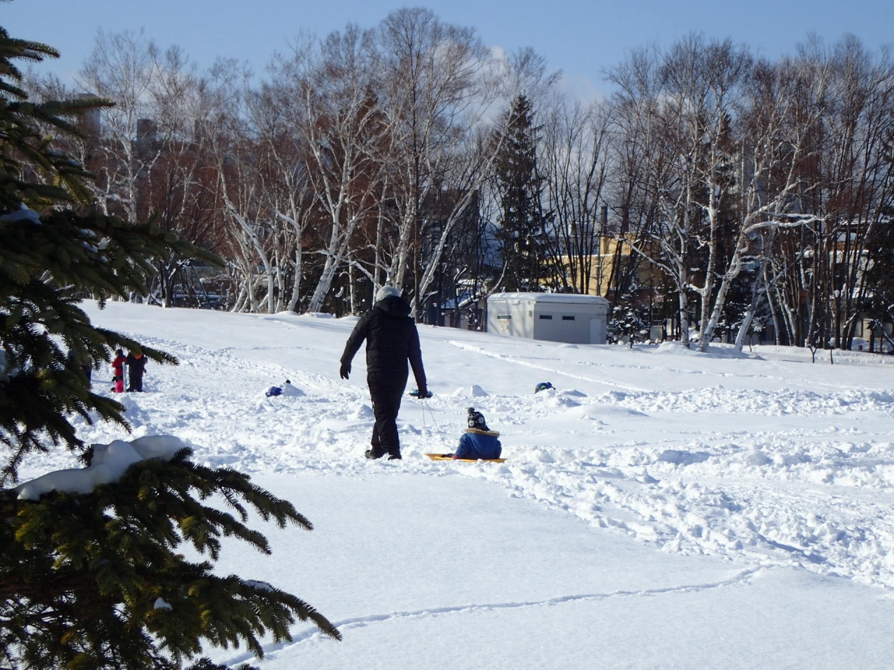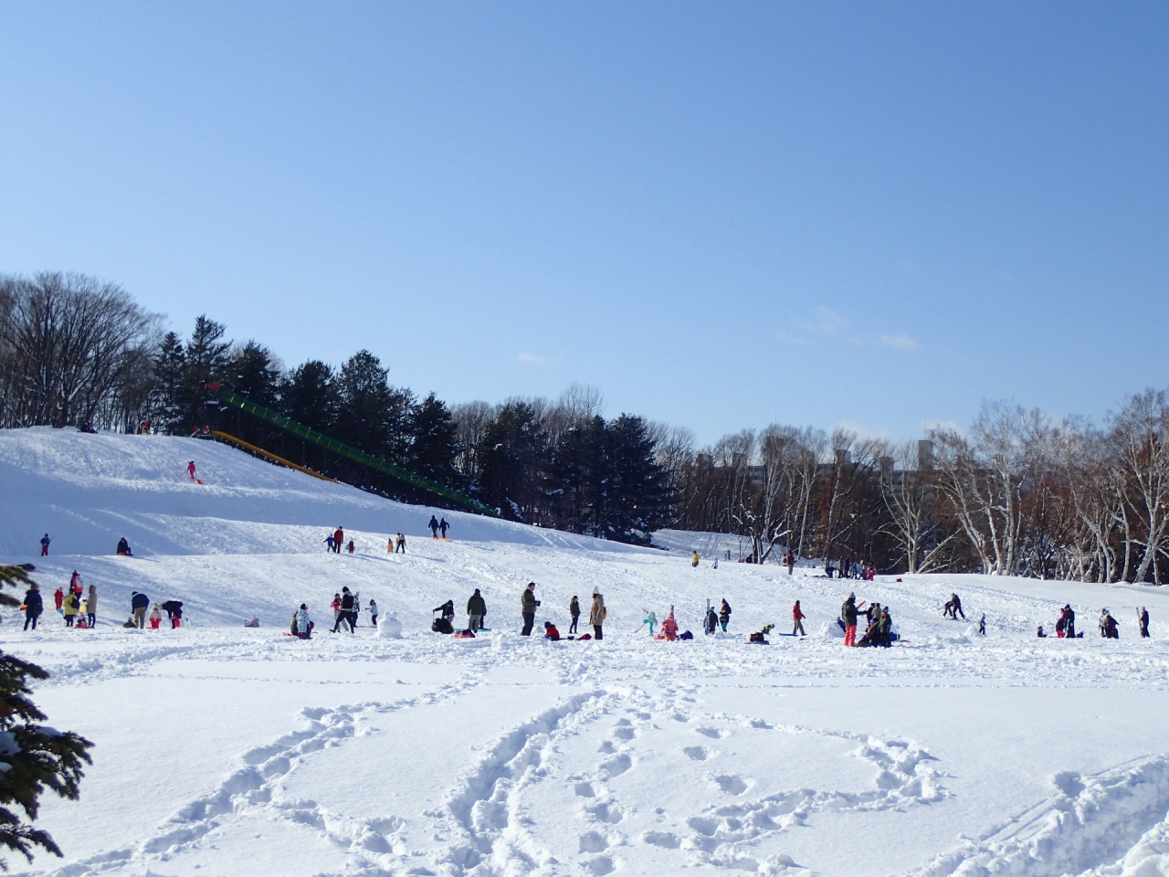 1月に入り月寒公園の多目的広場はそり滑りや、スキーを楽しむみなさんで賑わっています。