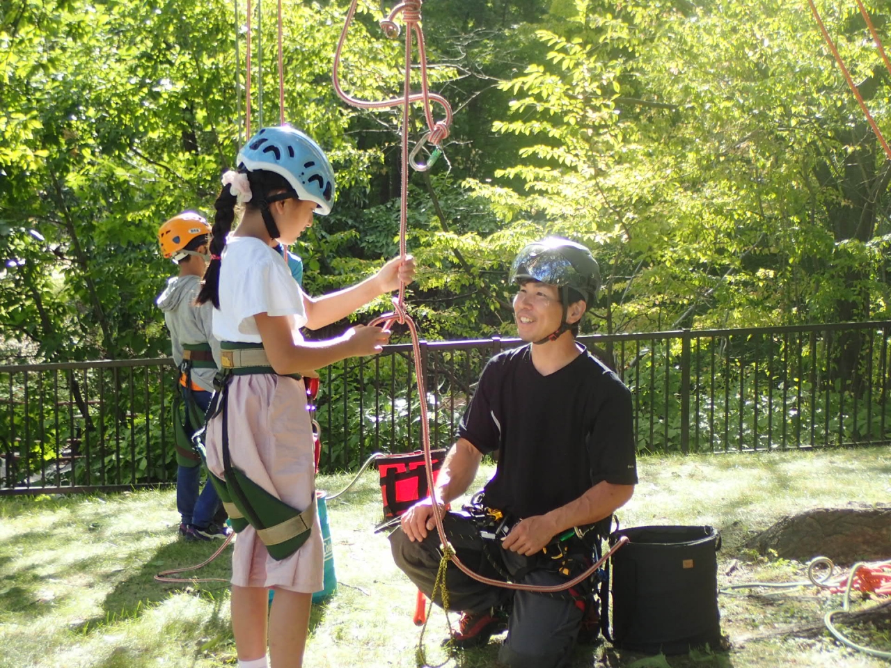 今回の体験会は、ツリーイングのインストラクター「大石ネイチャーコーディネート」の皆さんが、木の登り方を教えてくれます。