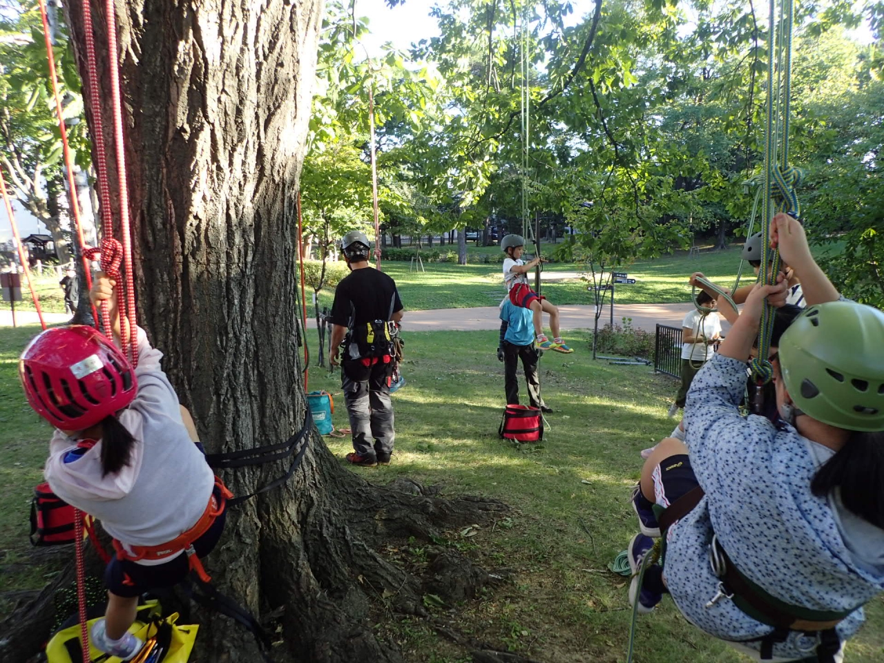 ロープを使って楽しく安全に木に登る”ツリーイング”の技術を使って、みんなで登ってみましょう!