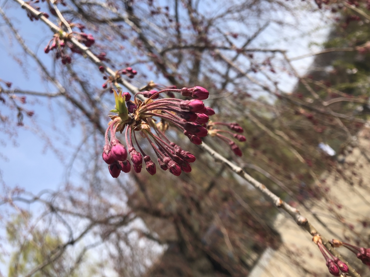 シダレザクラは現在つぼみの状態で、開花していません。