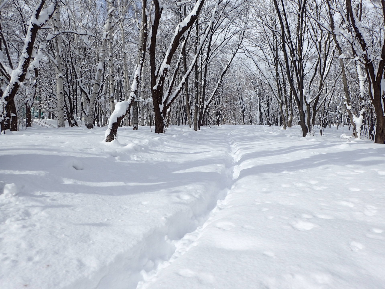 たくさんの雪が積もった直後は、新雪の中をラッセルして歩くので、なかなかの爽快感と疲労感を味わうことができます。これも、今だけしか味わえない冬の醍醐味ですね。