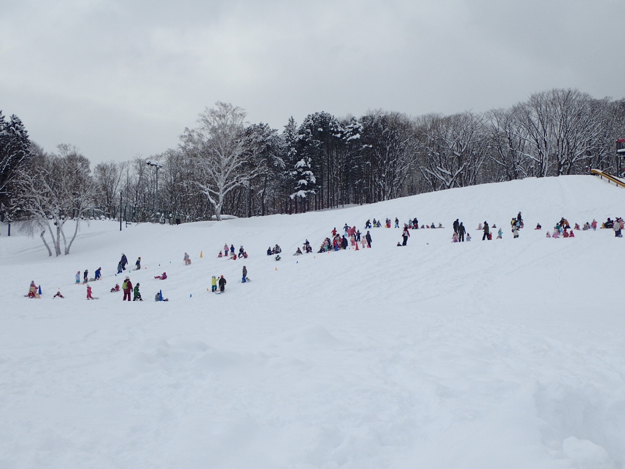 月寒公園の多目的広場も、今日は雪がしまっていて、そりで滑る子どもたちも楽しそうでした。